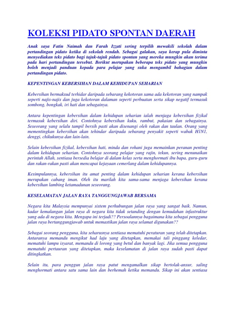 Koleksi Teks Pidato Spontan Pdf