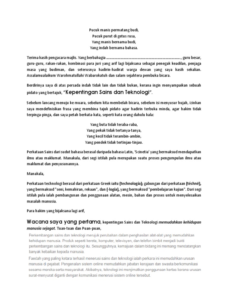 Skrip Pidato Bahasa Melayu Sekolah Rendah Kepentingan Sains Dan Teknologi Pdf